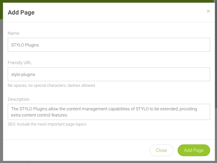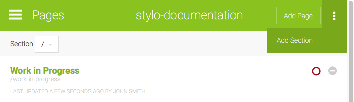 Clicking the name of a page will open the STYLO Editor that you use to edit the page content.